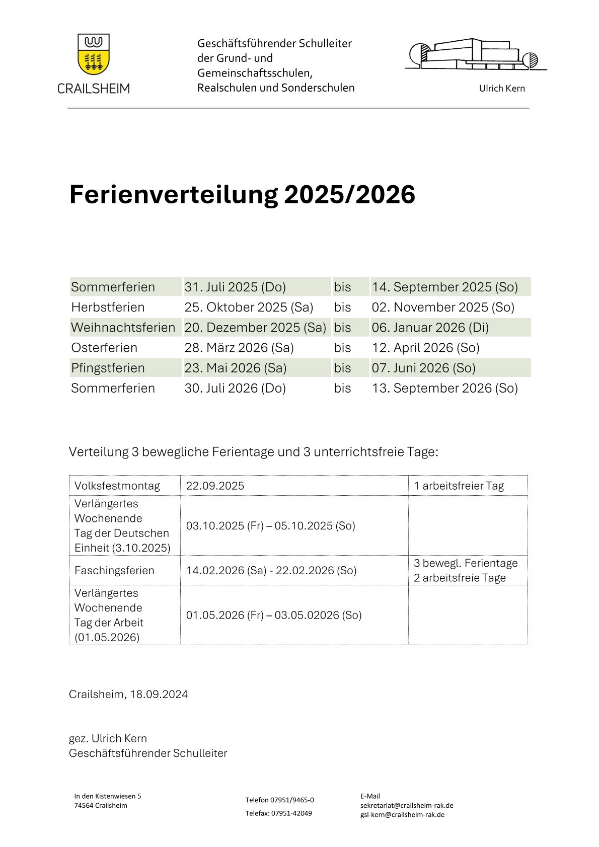 Die Elternbeiratssitzung findet am Montag, den 13. Oktober um 18 Uhr statt; die Schulkonferenz am Montag, den 13.10....